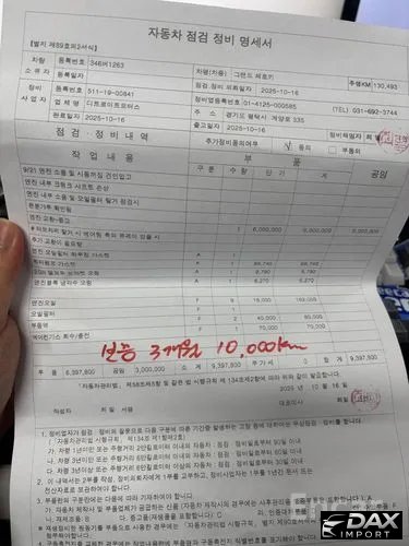 운전석 앞문,뒷문,쿼터패널,조수석 앞문 부분판금//정비이력1건/ 비금속 또는 탈부착 가능 부품은 점검사항에서 제외되며 중고차 특성상 부분적인 판금, 도색, 부식은 있을 수 있습니다.