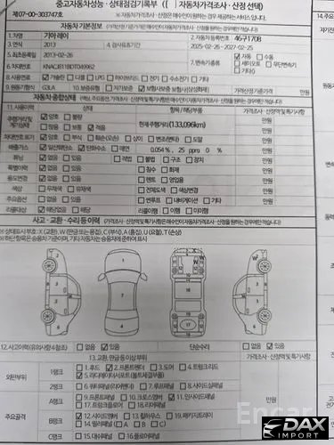 FRP/크로스맴버 볼트체결방식 점검 제외.비금속 또는 탈부착 가능한 부품은 점검사항에서 제외되며, 중고차 특성상 부분적인 판금도색은 있을수 있습니다.