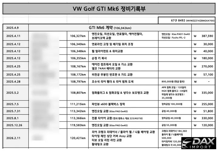 | Datum | Art | Teile | Arbeit | Lackierung |