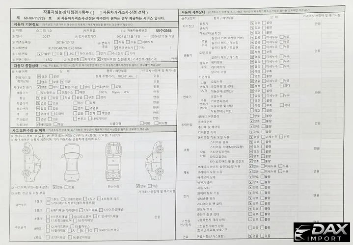 비금속(FRP 플라스틱)의 탈부착 가능 부품은 점검사항에서 제외되며 중고차 특성 상 부분적인 판금,도색 및 차량의 노후화에 따른 자연스러운 부식이 있을 수 있습니다. 부분적인 판금 도색 및 부식, 탈부착 가능한 골격부품 교환은 고지하지 않습니다. 배출가스 미측정.